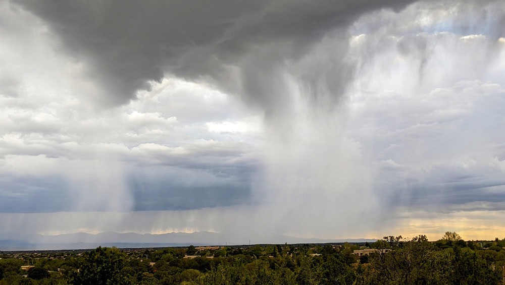 Precipitating clouds over Santa Fe, New Mexico, US.