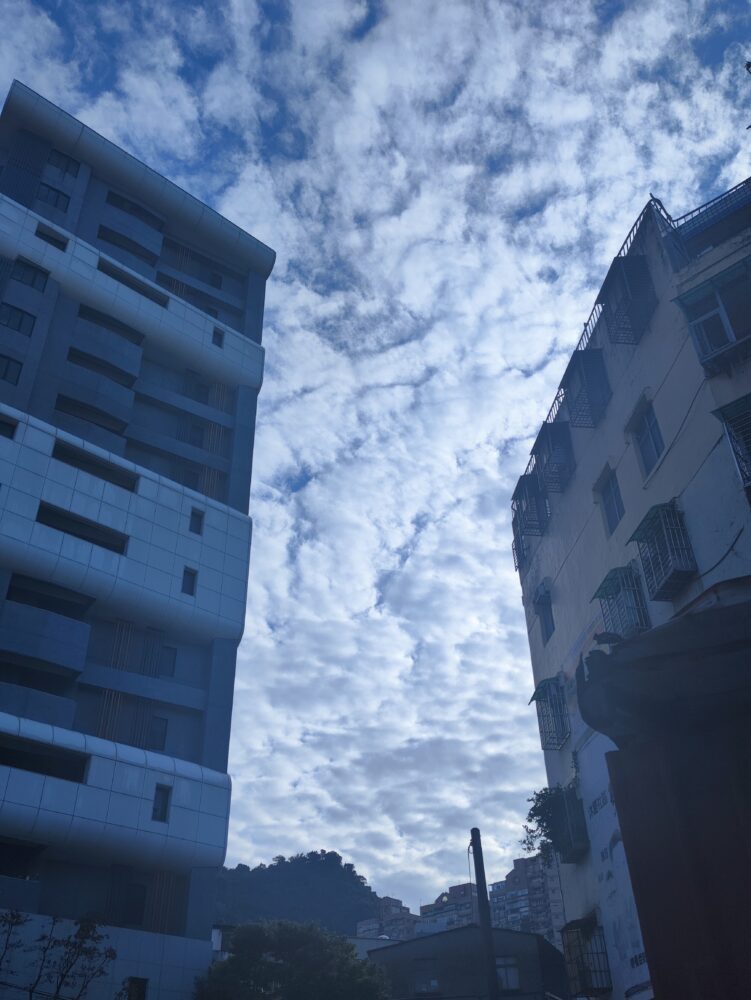 Altocumulus perlucidus spotted between two buildings, over New Taipei City, Taiwan