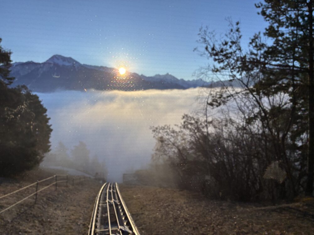 A view of low lying stratus in the valley, spotted by Bill's friend, Bill Buffie, from a funicular while traveling in Switzerland