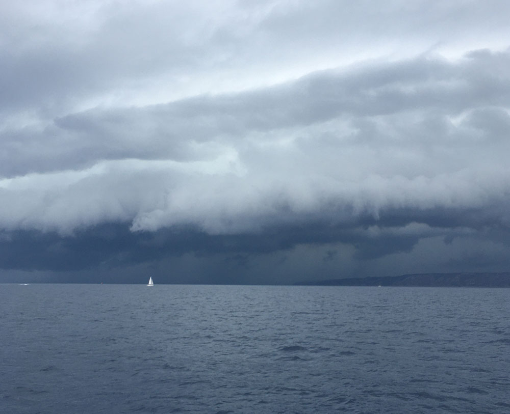 A storm front over Marseille harbour, France.