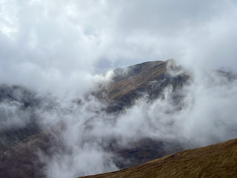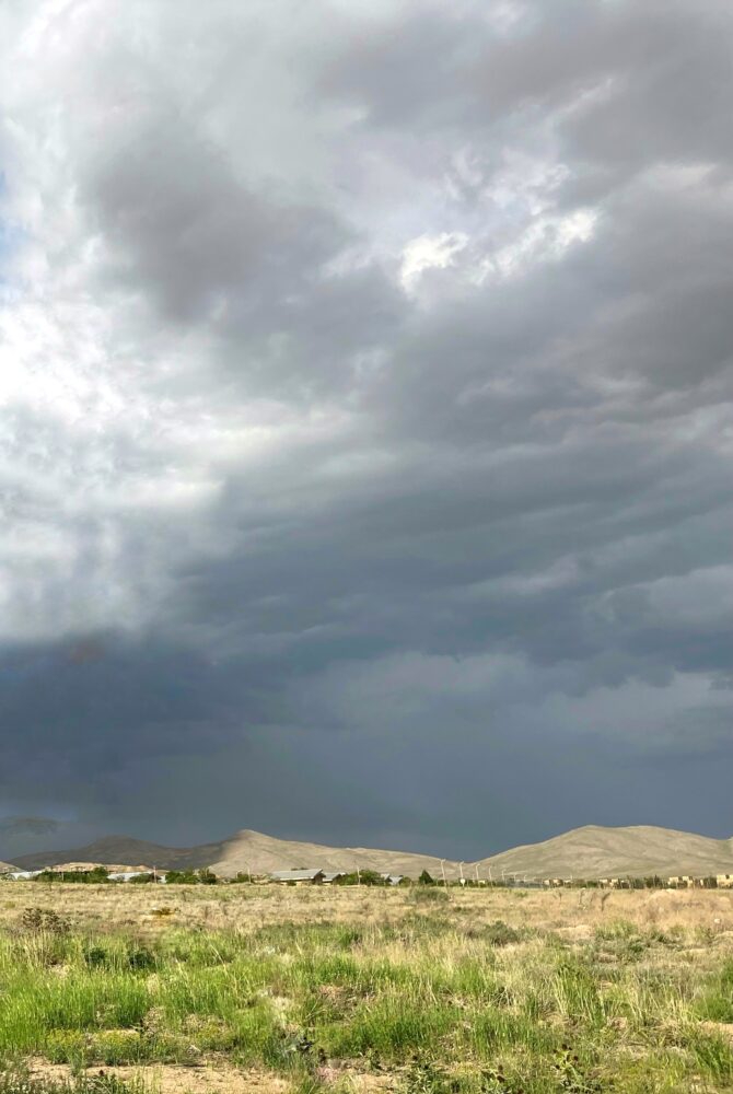 A view of precipitation that appears to be reaching the ground, spotted from atop Mount Ventoux, Provence, France