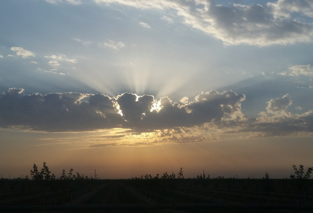 The morning sky over the agricultural fields near Greenfield, California, US