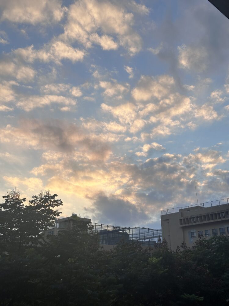 A window reflection of altocumulus perlucidus spotted over Marinoa City, Fukuoka City, Japan