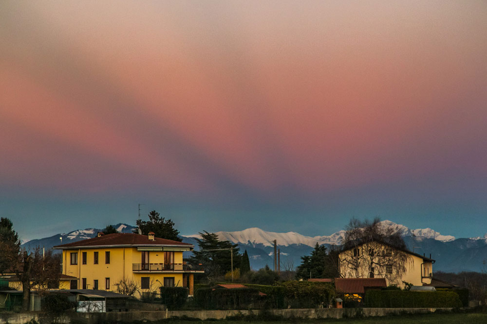 Anti-crepuscular rays over Sumirago, Varese, Italy.