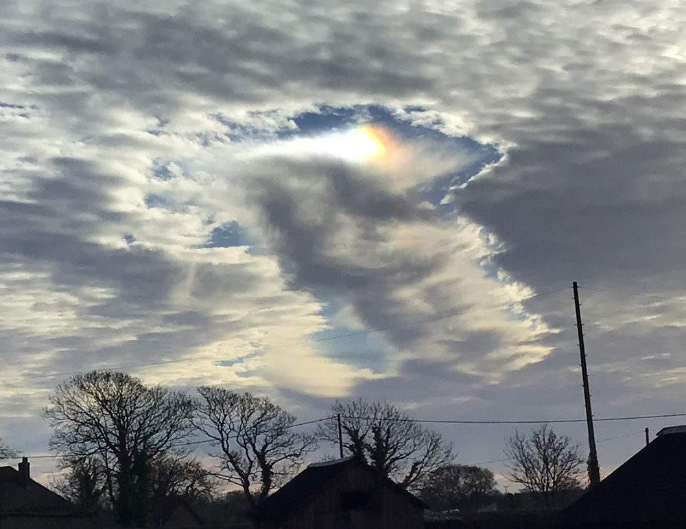 A sundog in a fallstreak hole over Catforth, Lancashire, England.