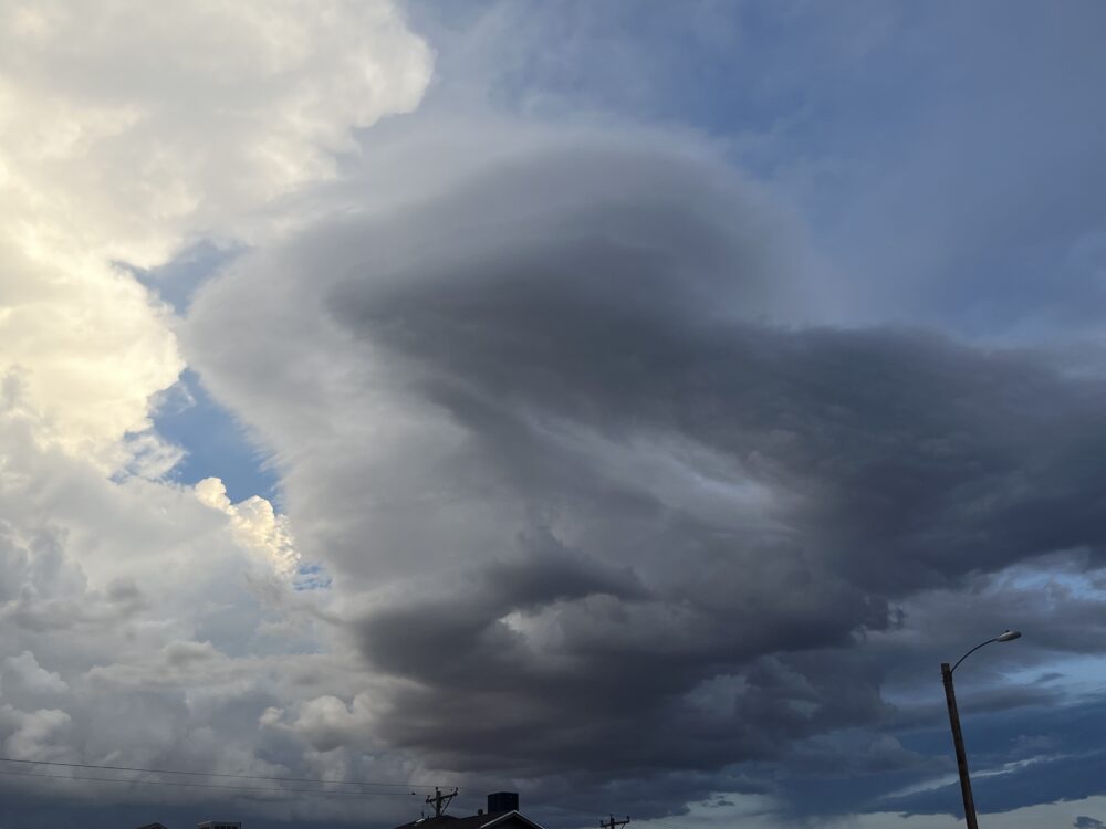 Altocumulus lenticularis spotted above a layer of stratocumulus, shortly before a storm over Canutillo, Texas, US