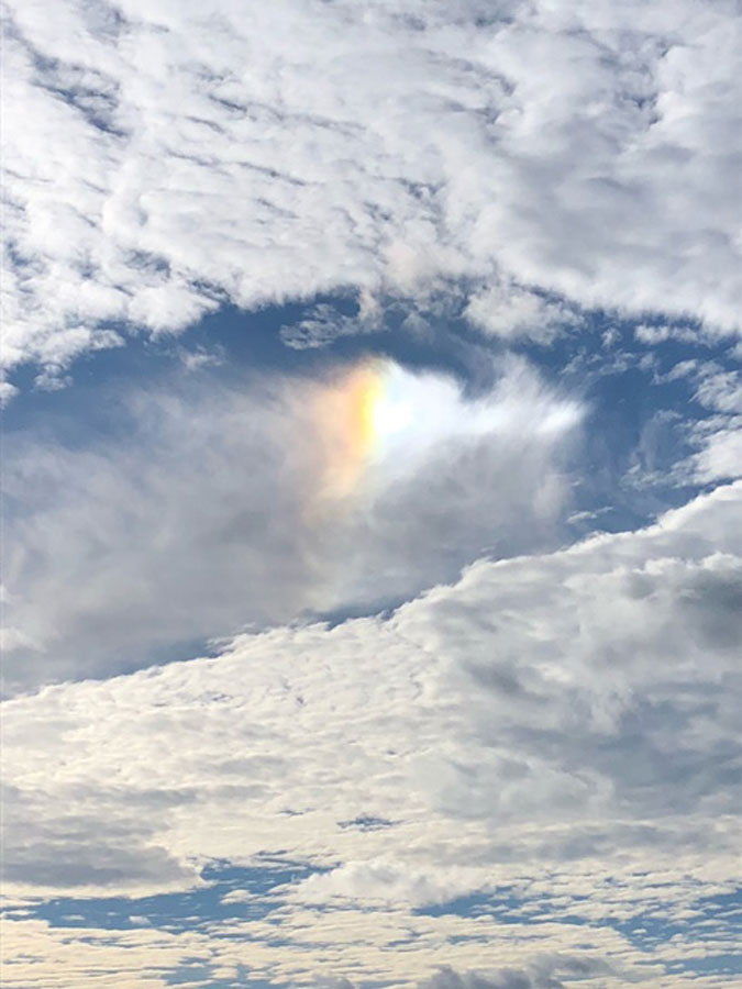 A sundog in a fallstreak hole over The Dalles, Oregon, US.