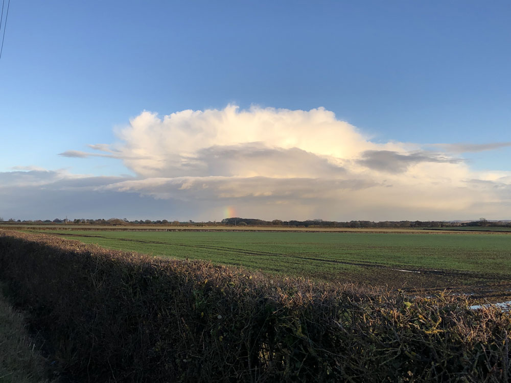 A storm system over the Vale of White Horse, Oxfordshire, England.