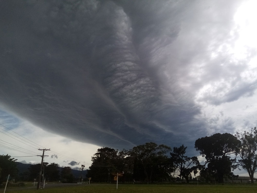 A storm front over South Featherston, New Zealand.