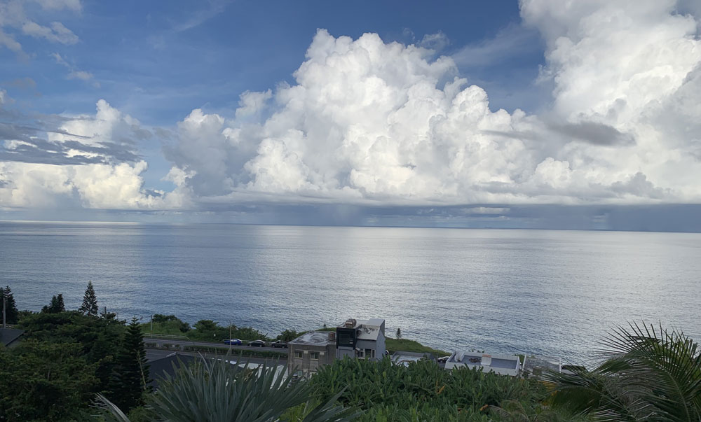 Strong mid-level winds shaping a cumulus cloud into a doughnut of sorts, spotted over Montbéliard, France