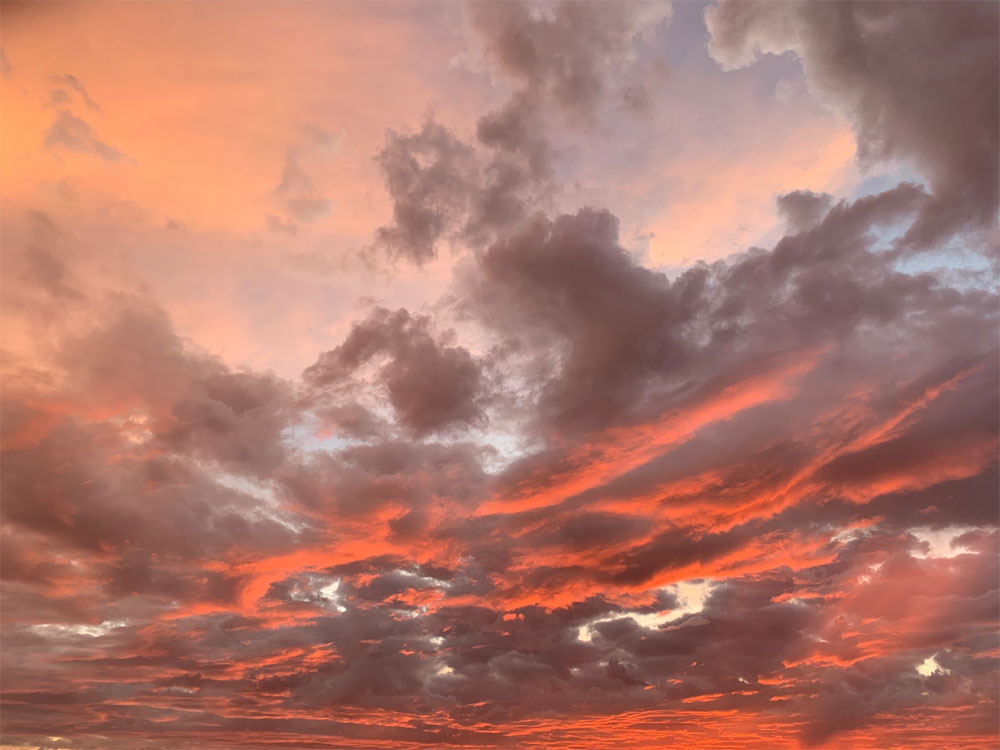 Sunrise over the Pacific Ocean with clouds that took on the resemblance of a skatepark in the foreground, spotted near Platanillo, Costa Rica