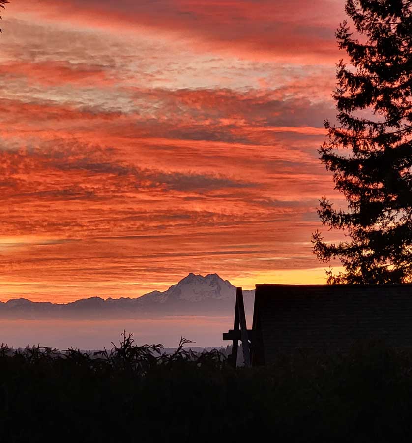 A sunset over the Olympic mountains, Washington, US.