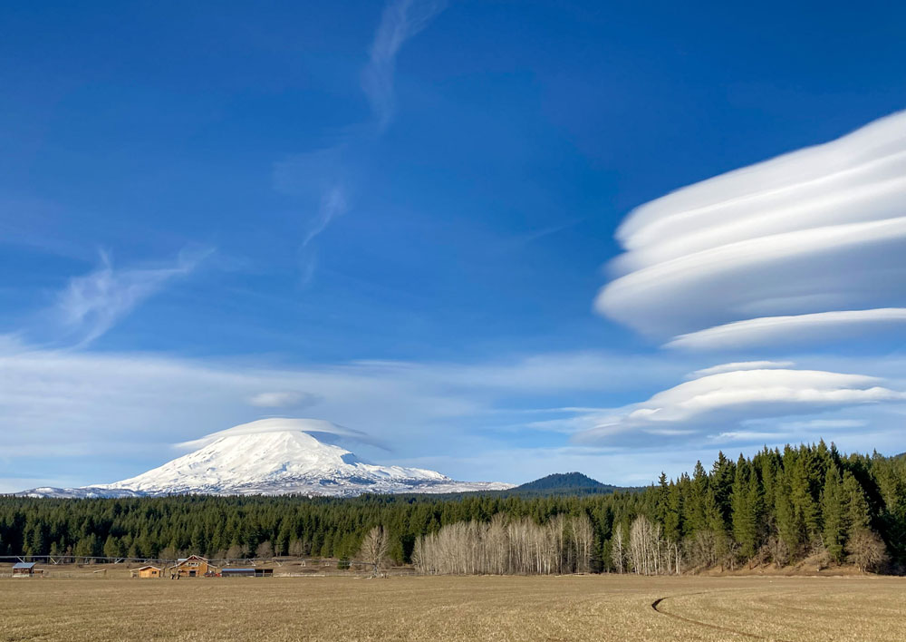 A unique juxtaposition of Altocumulus lenticularis and Fluctus (Kelvin-Helmholtz) spotted on the lee side of the Rocky Mountains in Berthoud, Colorado, US