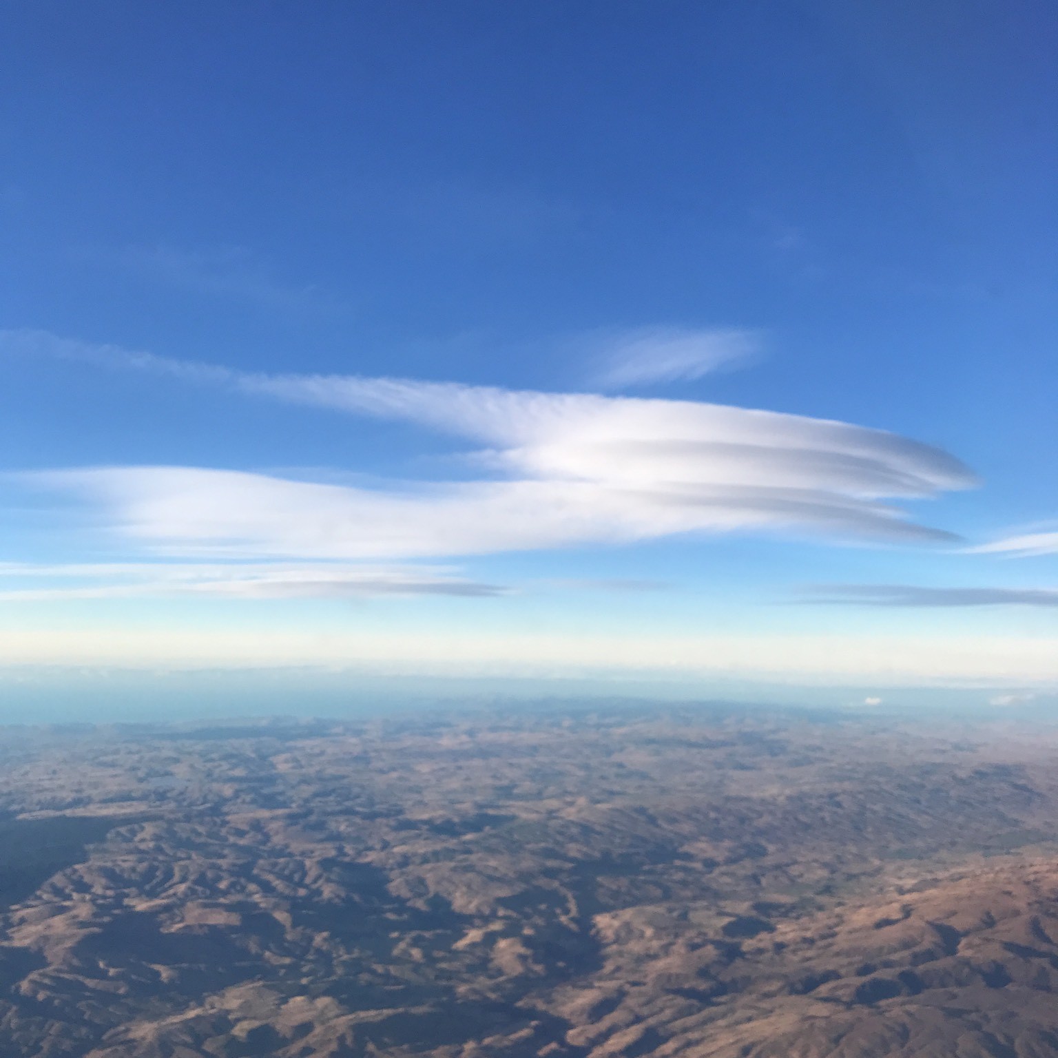 A blanket of Altocumulus stratiformis as viewed from above the clouds, spotted over Lake Michigan on approach to O'Hare International Airport, Chicago, Illinois, US