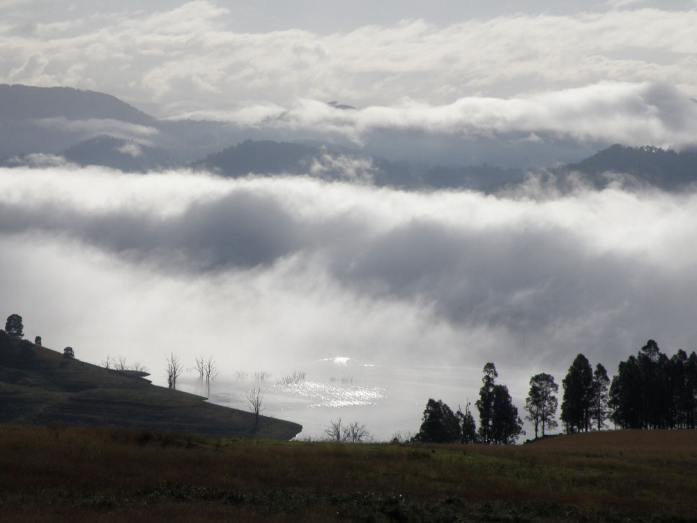 A view over Lake St Clair towards the Barrington wilderness in the Hunter Valley, NSW Australia.