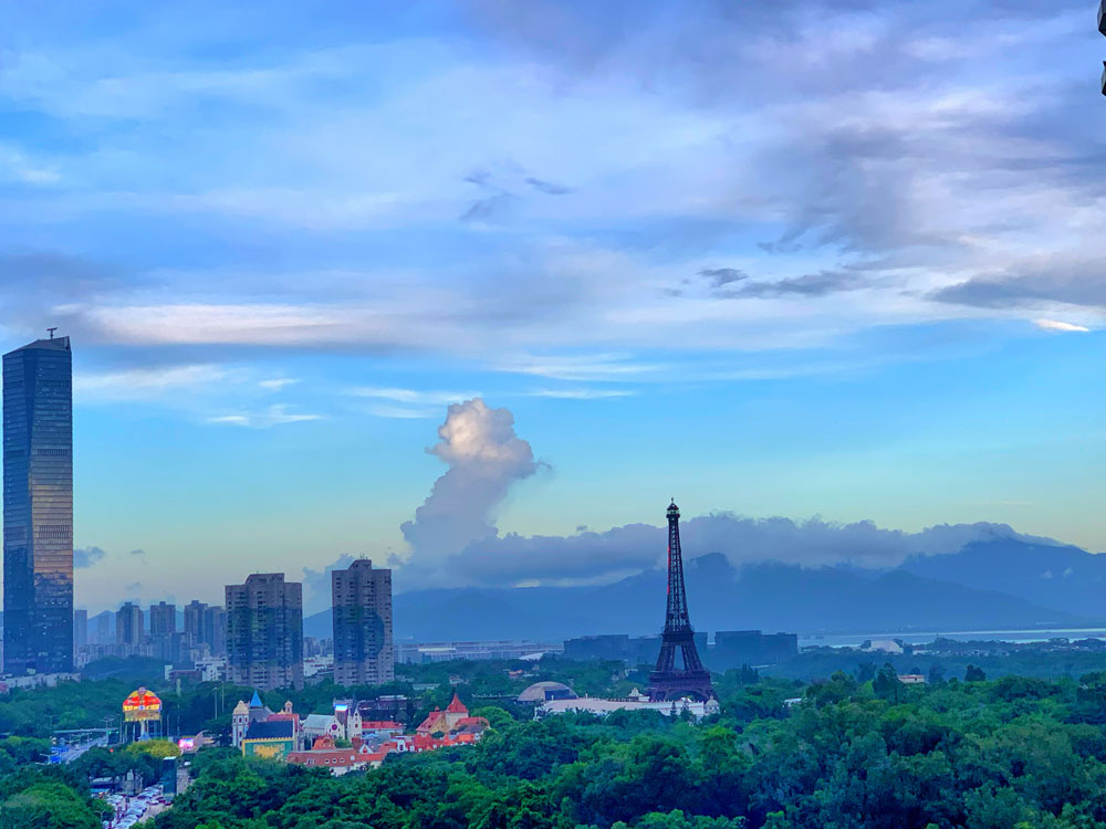 Altocumulus floccus resembling a bird with its wings spread, spotted over Meinohama Fishing Port, Fukuoka City, Japan