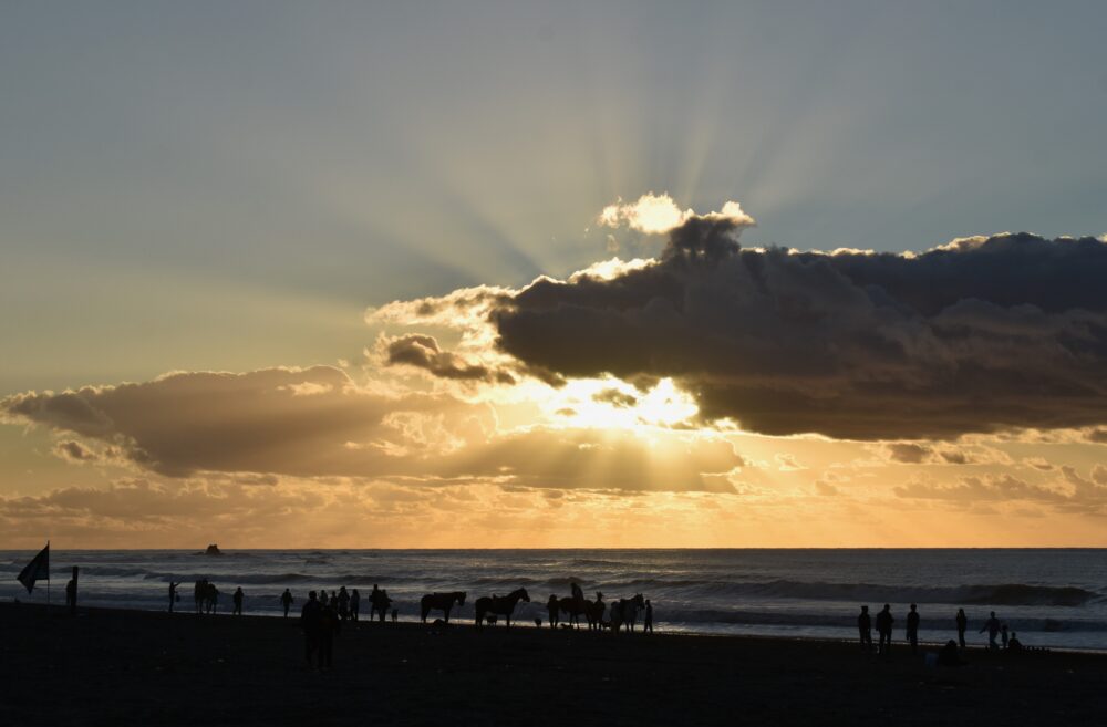 Crepuscular rays at sunset over the Atlantic Ocean, spotted off of the coast of Morocco, North Africa