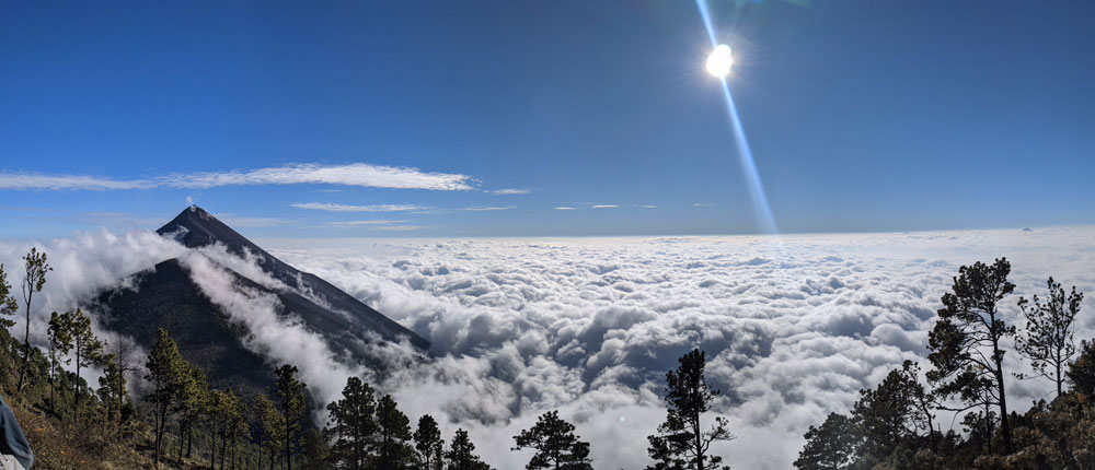 A sea of Stratus over the volcano Fuego, Guatemala.