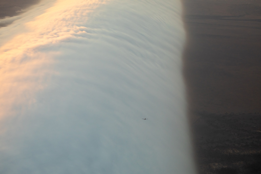 A Beechcraft Bonanza (from Savannah Aviation) taking tourists on a scenic flight along a Morning Glory Cloud, near Burketown in North Queensland, Australia.