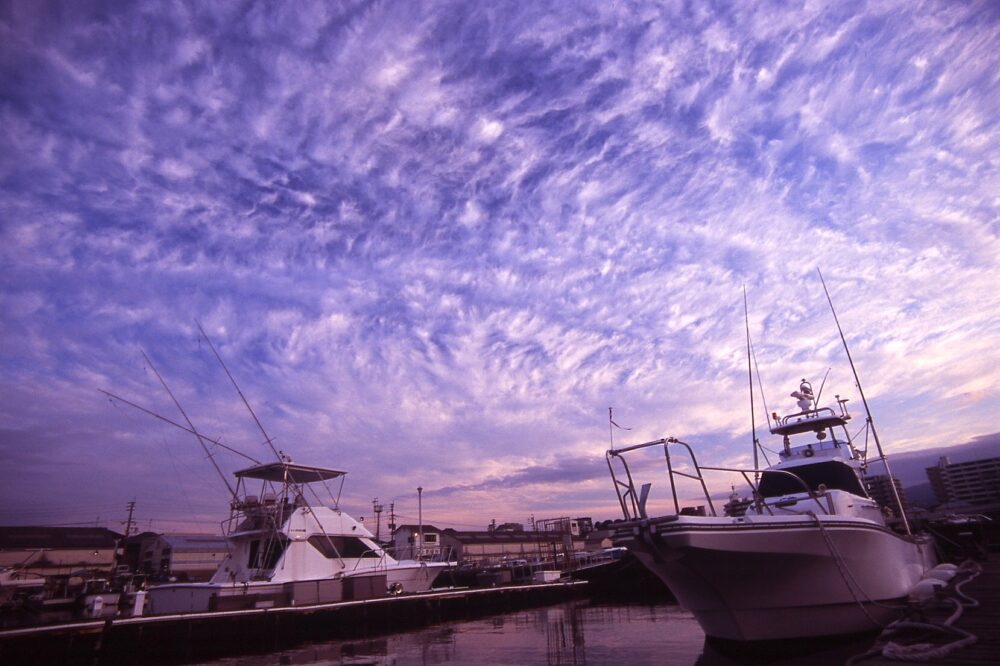 Altocumulus floccus over Meinohama Fishing Port, Fukuoka City, Japan