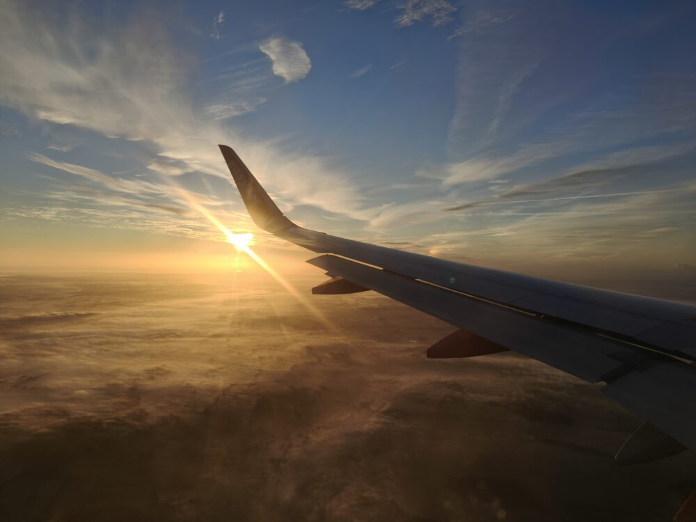 Shortly after sunrise, the view from above, sandwiched between layers of clouds during a flight from Glasgow to Stansted, spotted near Dilhorne, England