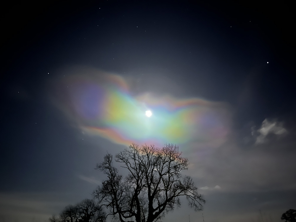 A nacreous cloud by moonlight over Richmond, North Yorkshire, England.