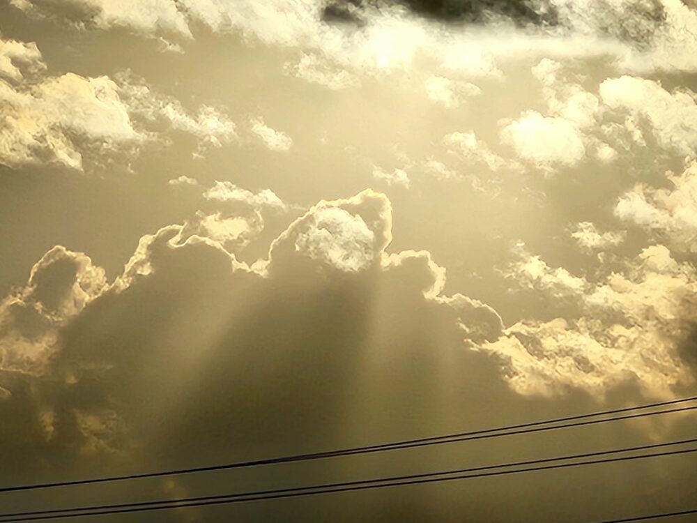 Cumulus and crepuscular rays spotted shortly after sunrise over Madison, Wisconsin, US