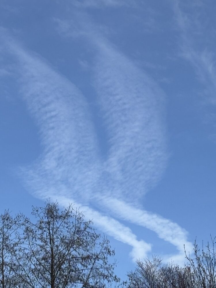 Remnants of contrails spotted over Lake Stevens, Washington, US