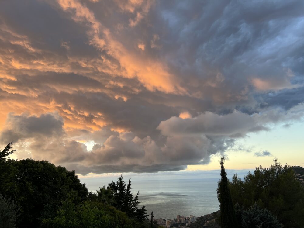 A storm system with an accompanying low cloud base, spotted over Monaco