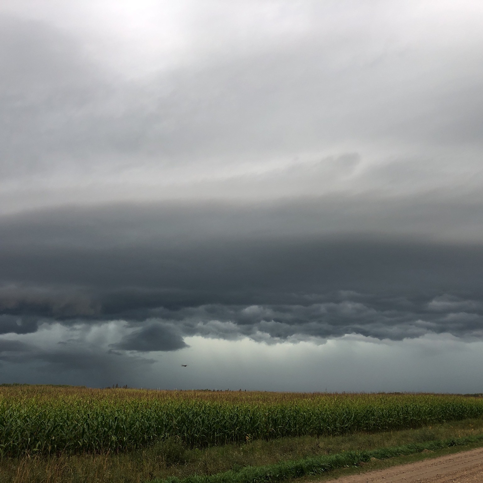 A subtle display of anti-crepuscular rays spotted in the opposite direction of the sunset over North Dundas Township, Ontario, Canada