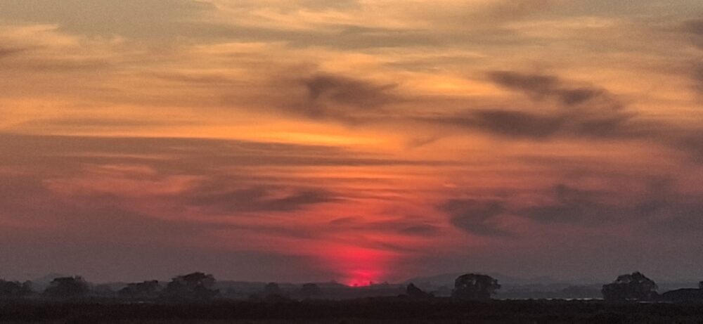 Sunrise with a view of a cloud that John thought vaguely resembled the shape of Australia, spotted over Brisbane, Australia