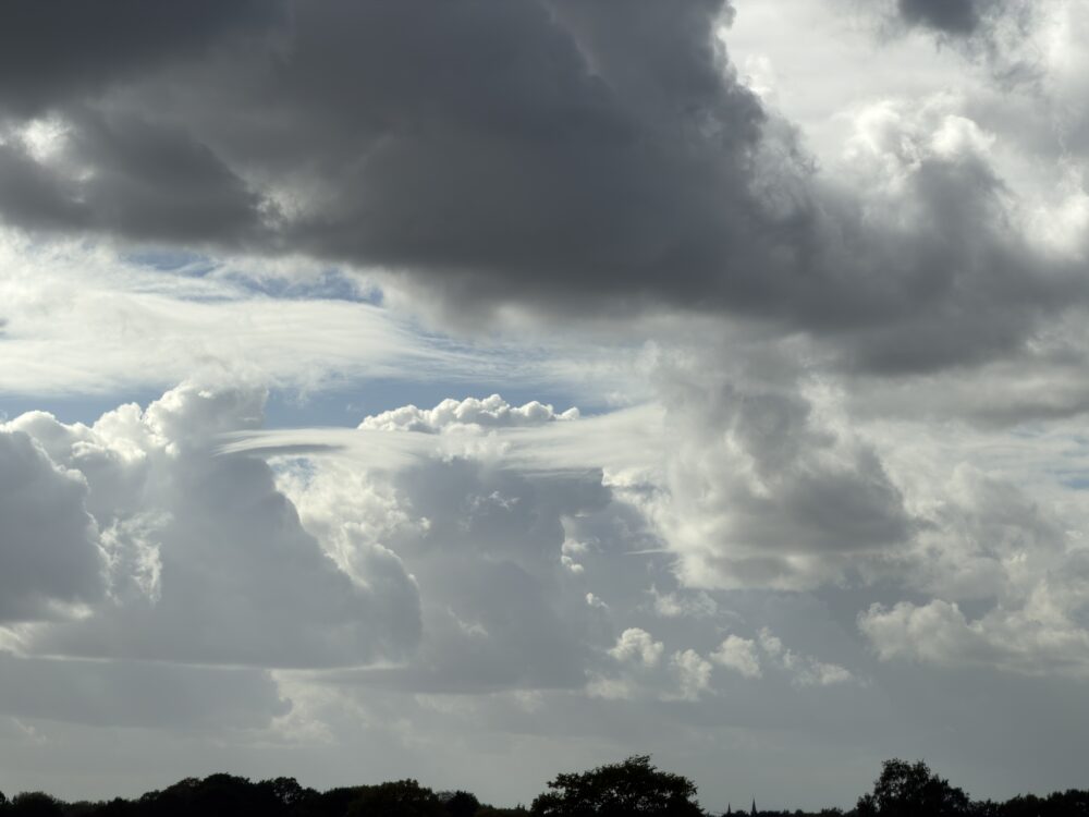 Signs of altocumulus lenticularis amidst the variety of cumulus in the sky over Belgium
