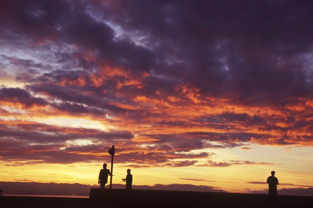 A mesmerizing sunrise for the fishermen at Marinatown Seaside Park, Fukuoka City, Japan
