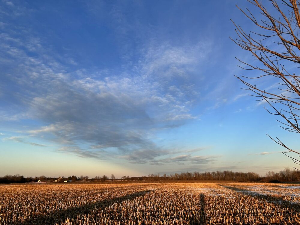 A subtle display of anti-crepuscular rays spotted in the opposite direction of the sunset over North Dundas Township, Ontario, Canada