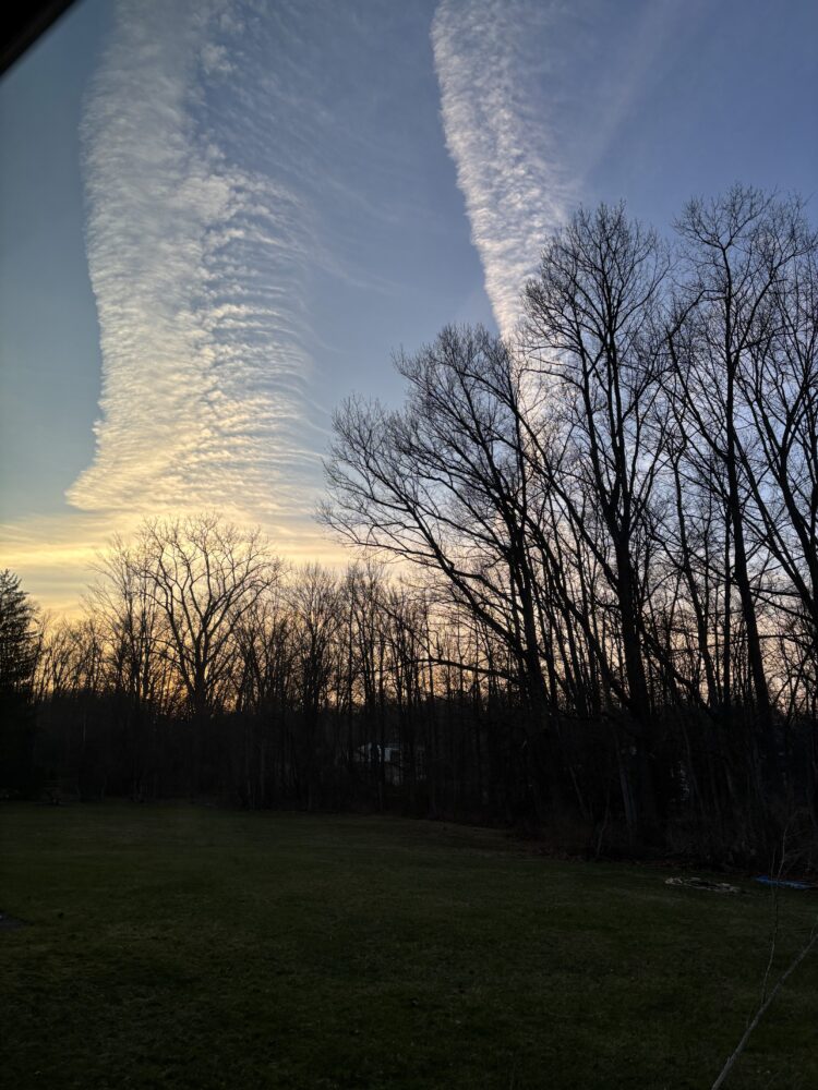 Remnants of contrails spotted over Brecksville, Ohio, US