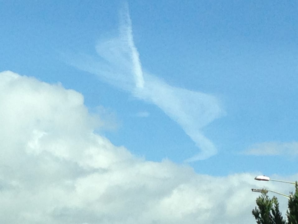 Cumulus that looks like a dog's head looking to the side, spotted over Vancouver, Washington, US