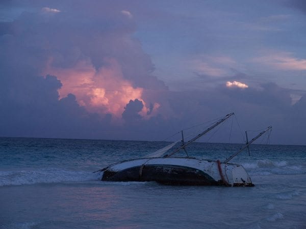 4 thoughts on “The setting sun fires up a cloud formation behind an old ship wreck, seen from the beach in Tulum Mexico.”