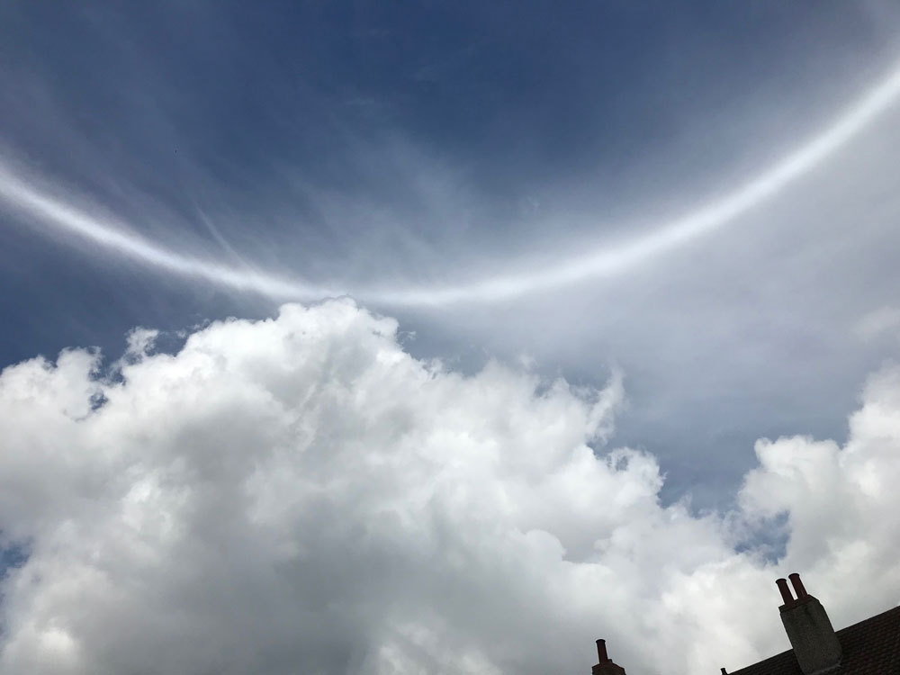 A section of parhelic circle over Machynlleth, Mid Wales.