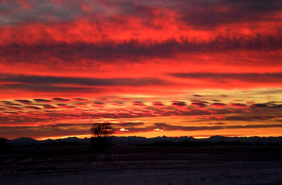A sunset over the Canadian Rockies near Calgary, Alberta, Canada.