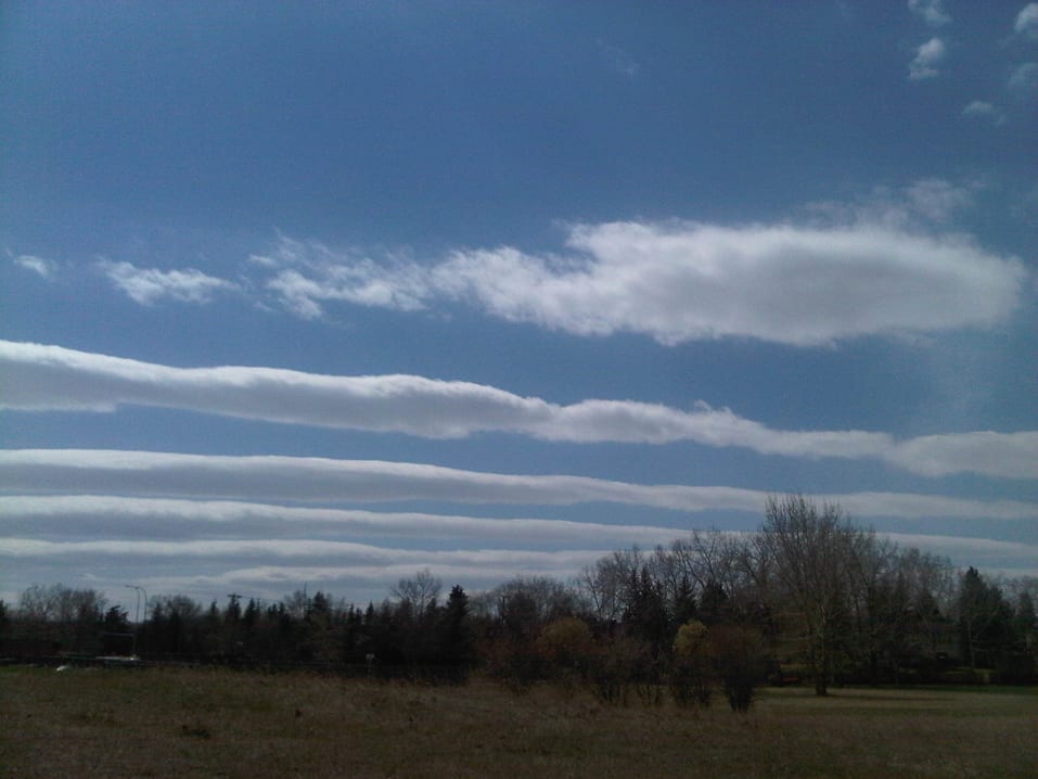 An undulating cloudscape over the Rocky Mountains viewed from Calgary, Alberta, Canada.
