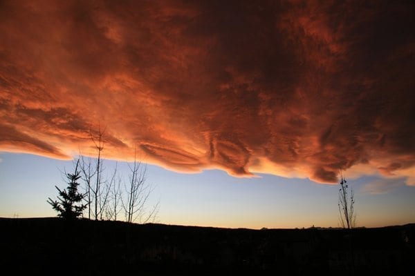 The Chinook Arch, at times seen as a vast sheet of Altostratus and also as in this case, seen with Lenticularis characteristics…it often is accompanied by very high wind speeds up to 100km/h ……….This is a phenomena observed in Canada, over the southwestern Alberta area. This photo was taken at Cochrane, Alberta, Canada.