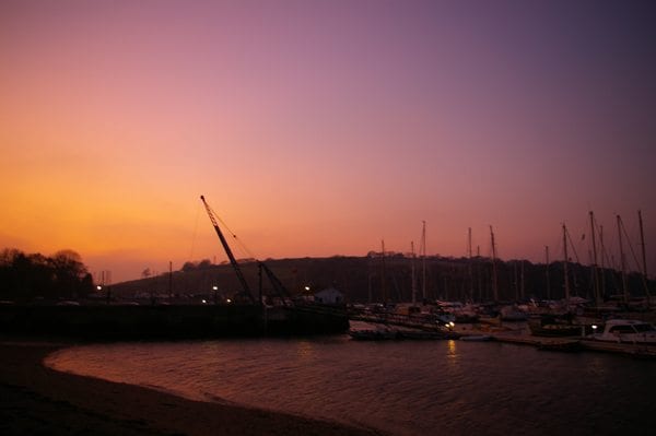 Sun going down over Mylor Harbour, Falmouth, Cornwall. U.K.