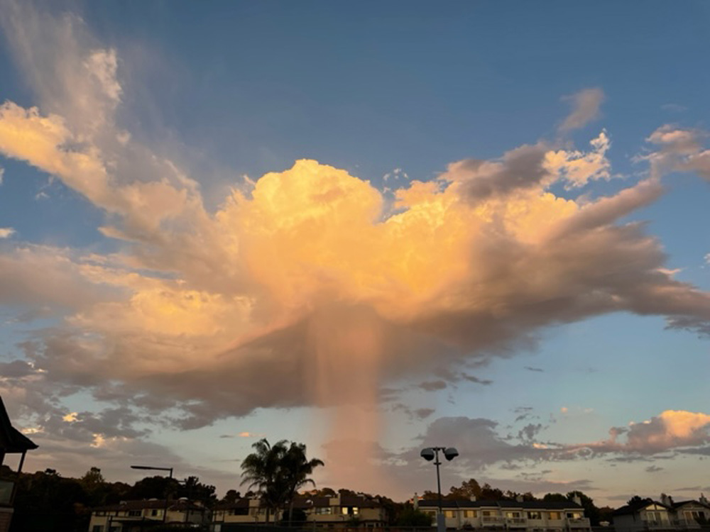 A microburst, AKA cloud sneeze, over Aptos, California, US.