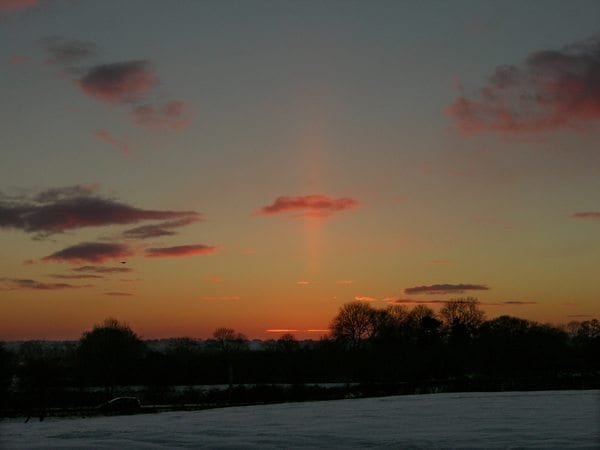 2 thoughts on “Sun pillar sunset, Ballymena, County Antrim, Northern Ireland.”
