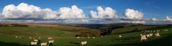 Nice panoramic shot. Interesting that the French refer to small clouds like this as 'moutons' i.e. sheep. So we have moutons looking at the moutons!