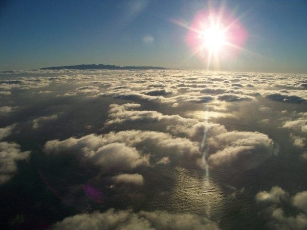 A view from the flight deck while flying through cirrus on the way to the small island of Porto Santo.