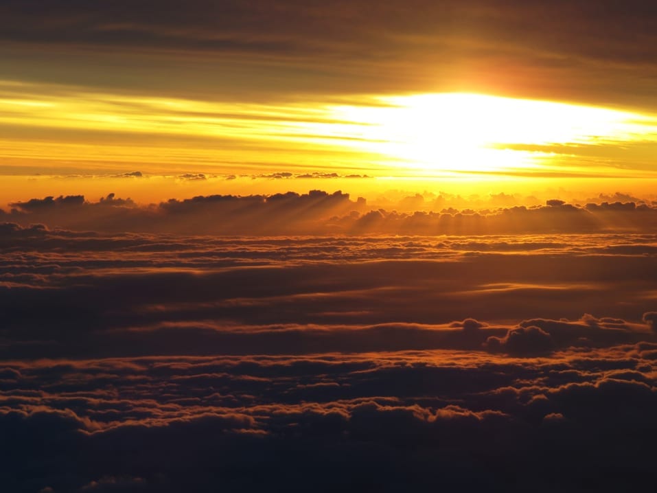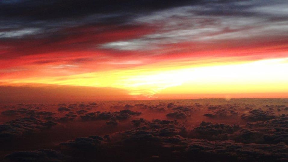 A sunrise over Cork, Ireland, viewed from the flight deck at 30,000ft. on a flight to Lanzarote.