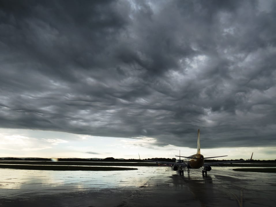 An Asperitas formation viewed from the flight deck in the queue for take off, Manchester, UK.