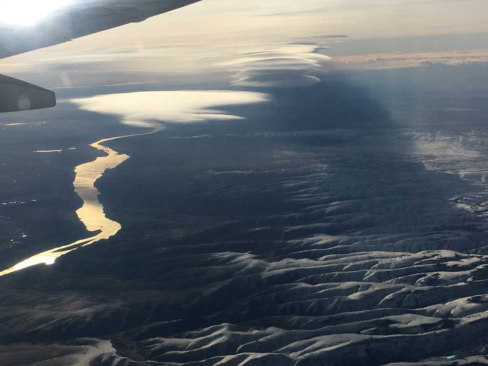 The clouds over the Columbia River, spotted from a flight leaving Seattle, US.