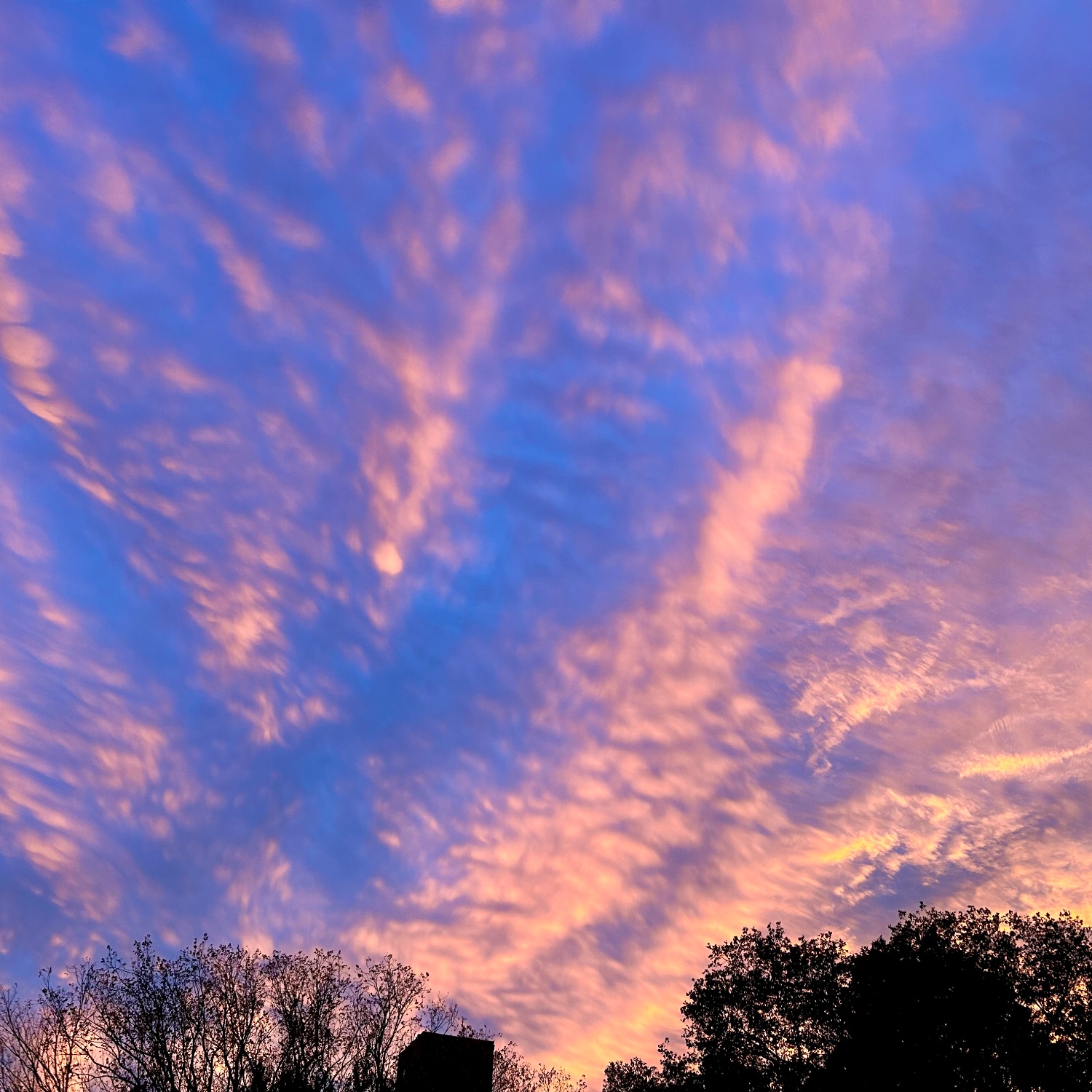 Jane Curley (Member 56,854) was walking down Central Park West, New York City, US when she spotted these Altocumulus stratiformis mamma clouds. Mamma are supplementary features of cloud shaped like pouches or globules – sometimes rough, sometimes smooth – that can hang from a cloud layer. The mamma in this sky made Jane think of candy floss. The sugary expanse of cloud illuminated by the setting Sun reflected enough light down to the city below to make Jane’s dusky stroll feel ‘unusually pink’.